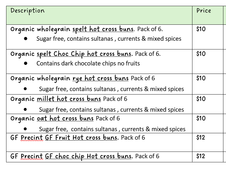 All hot cross buns (except GF) are organic sourdough.